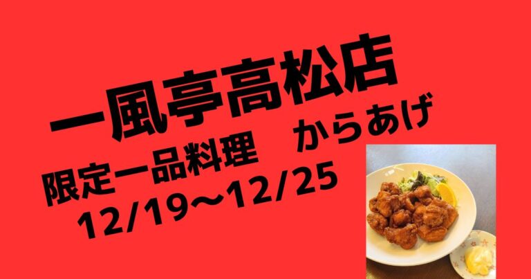 高松の一風亭です! 12/19(金)~12/25(木) 限定一品料理【からあげ】をやります!! 一風亭のからあげ 一風亭のからあげは、醤油らーめんのカエシにも使っている自家製醤油にとりもも肉を漬け込んだ特製からあげです!…